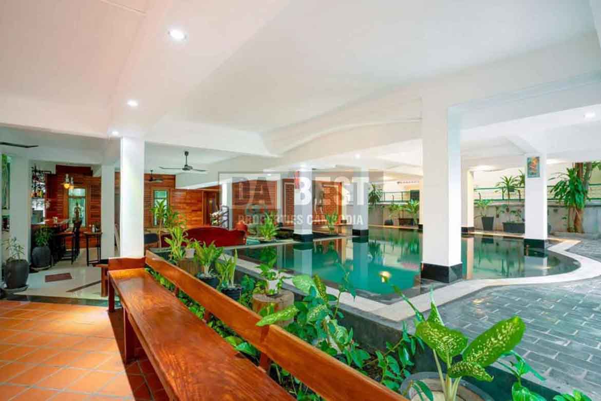 This hotel is located only 2.4 kilometers from Siem Reap city center which is Old market and Pub Street. It is a reasonably priced hotel with 14 bedrooms and 15 bathrooms. This hotel offers a good business opportunity for those people who looking for investment and doing business in Siem Reap which is a popular tourist destination in Cambodia. Moreover, compared to similar properties, this hotel provides a good and affordable rental price. This hotel also has a swimming pool, so the guests can enjoy and relax at their spare time.