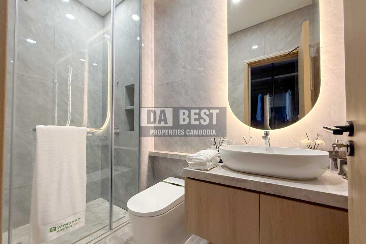 UC88 Phnom Penh presents a modern three-bedroom residence for sale in the heart of BKK1. This large condominium, which is on the 41st floor and with breathtaking city views, has a net area of 192 square meters and a gross area of 274.2 square meters. The condo, which is designed for luxury living, has five bathrooms, a large, light-filled living area, comfortable bedrooms, and convenient wet and dry kitchens. This property is perfect for families or investors looking for a premium living in Phnom Penh’s highly desirable district.
